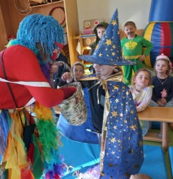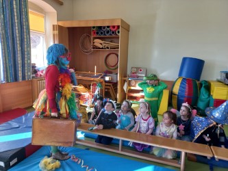 Ein besonderer Höhepunkt in unserem Kindergartenjahr ist unser jährlicher Maskenball mit Maskenmodenschau. Da wird getanzt, viel gelacht, manchmal auch ein bisschen gezaubert – sogar eine Clowndame hat uns heuer besucht und nur lauter Unsinn gemacht!
