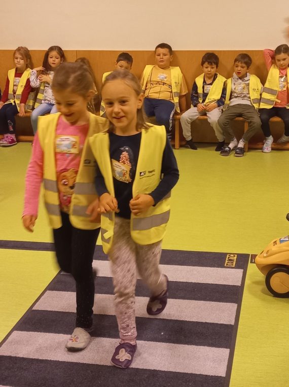 “learning by doing” Straßen 1×1 Unter dem Motto “learning by doing” durften unsere Schulanfänger-innen im Kindergarten an dem Programm “Das kleine Straßen 1×1” teilnehmen. Spielerisch und altersgerecht wird das Verhalten im Straßenverkehr vermittelt – damit unsere “Großen” fit für die Herausforderungen des Schulwegs werden. Hier Klicken Hier Klicken