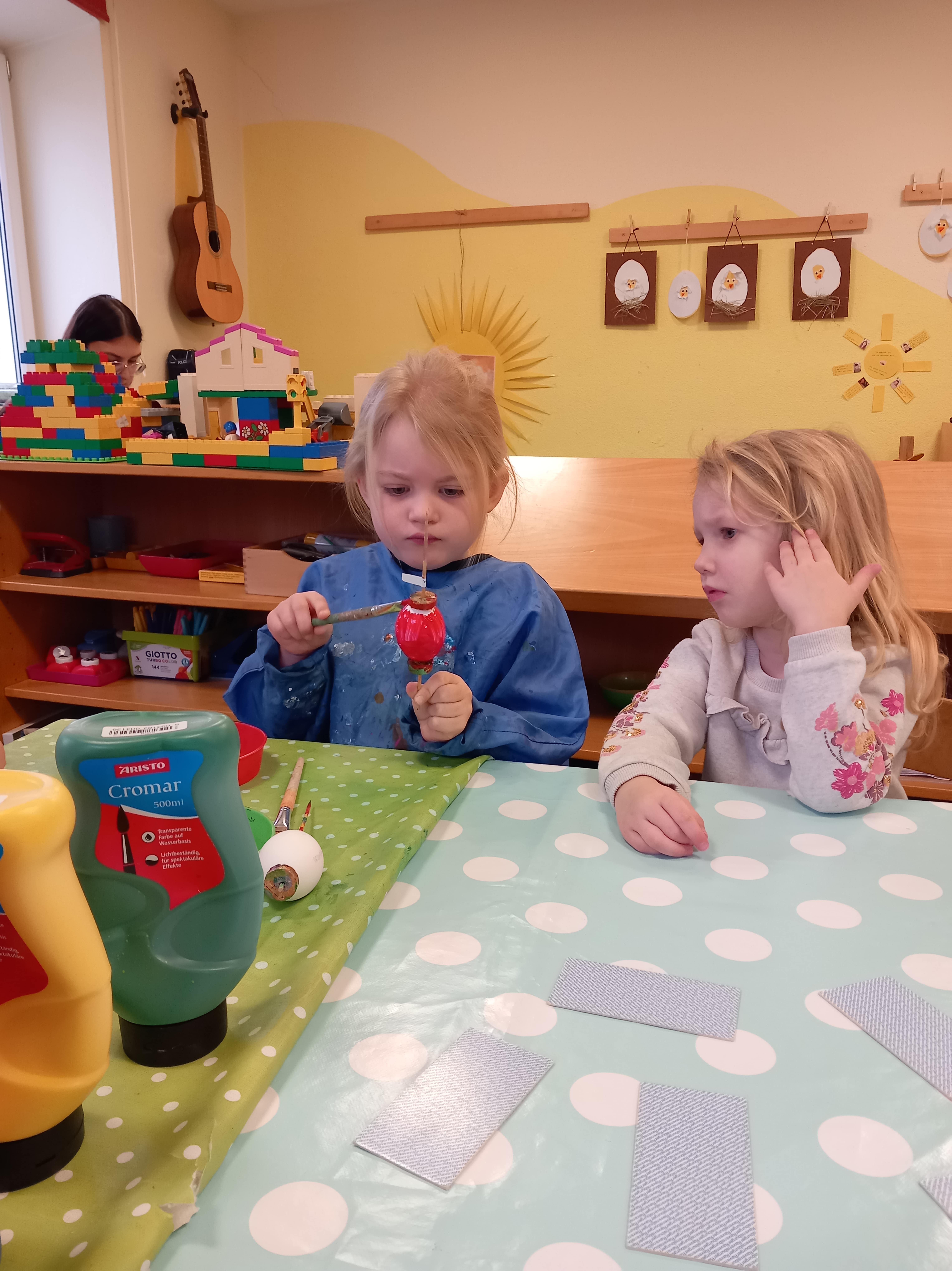 Aber auch das Ostereier bemalen darf nicht fehlen bei uns…!